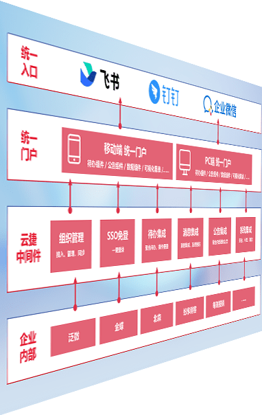 对协作平台提供支持服务,,,,支持企业应用与协作平台对接,,,包含组织同步、、、消息集成、、、、待办集成等。。。支持目前主流的协作平台:钉钉、、企微和飞书。。
